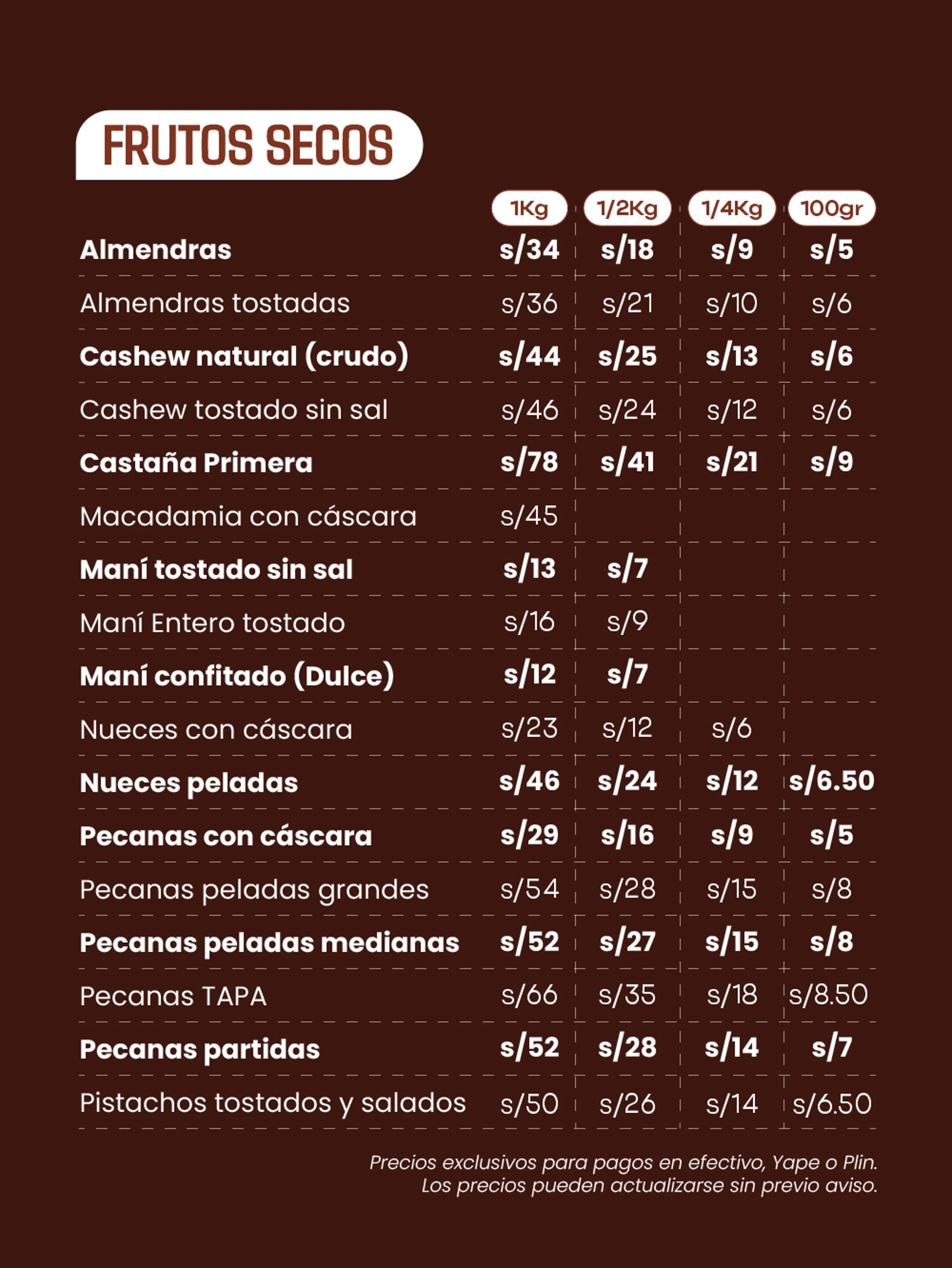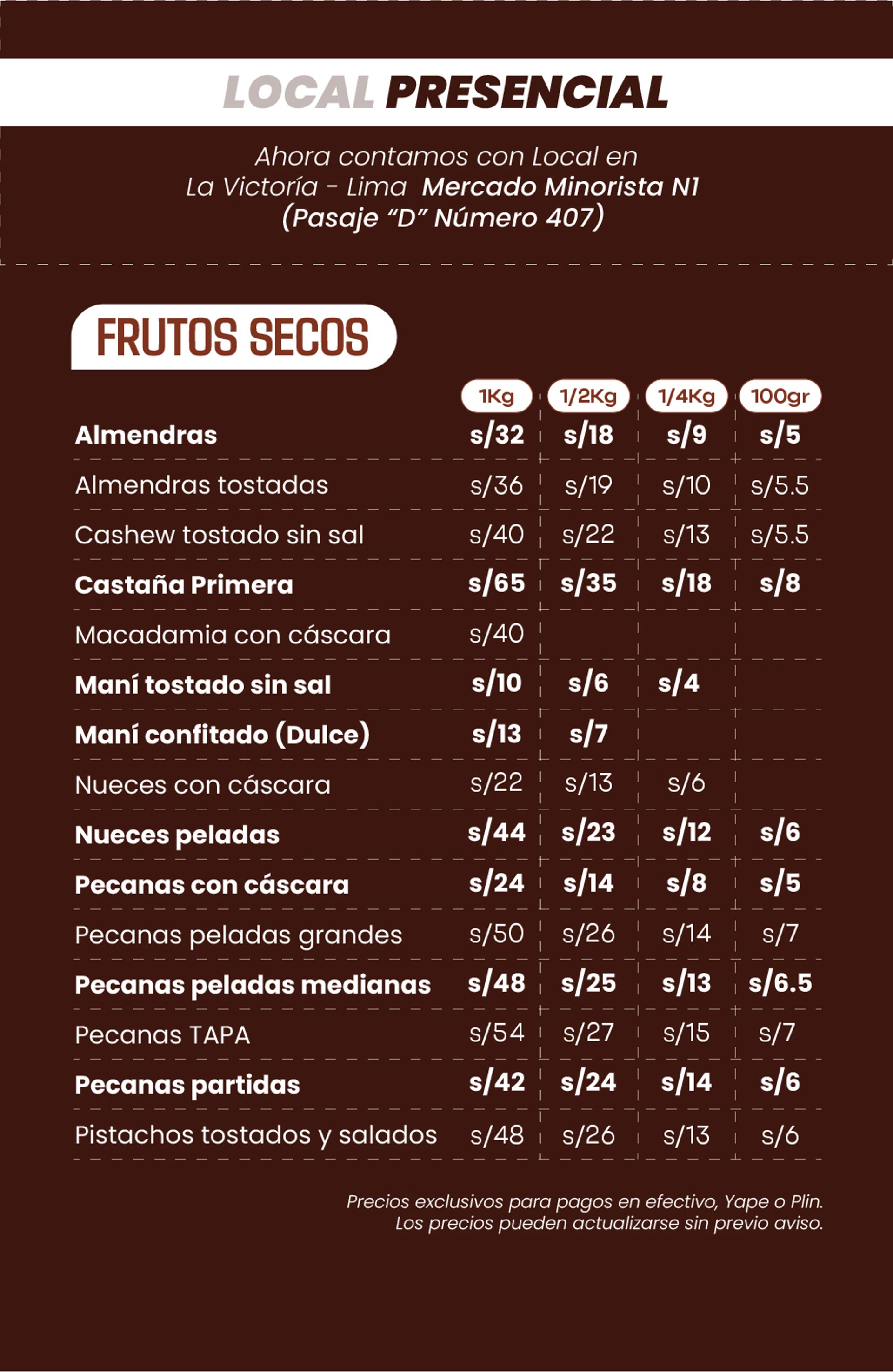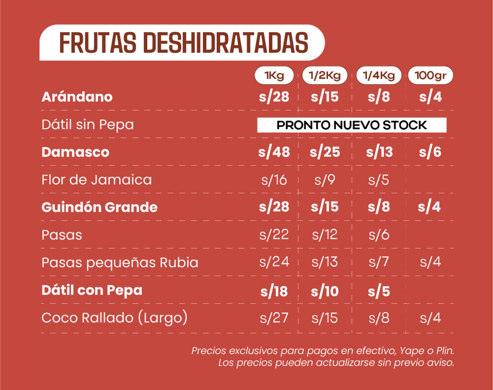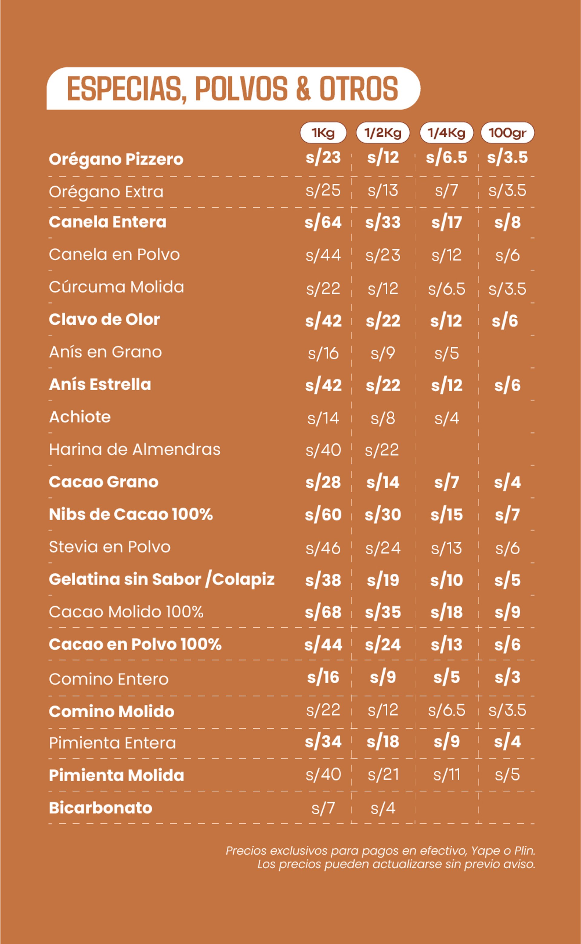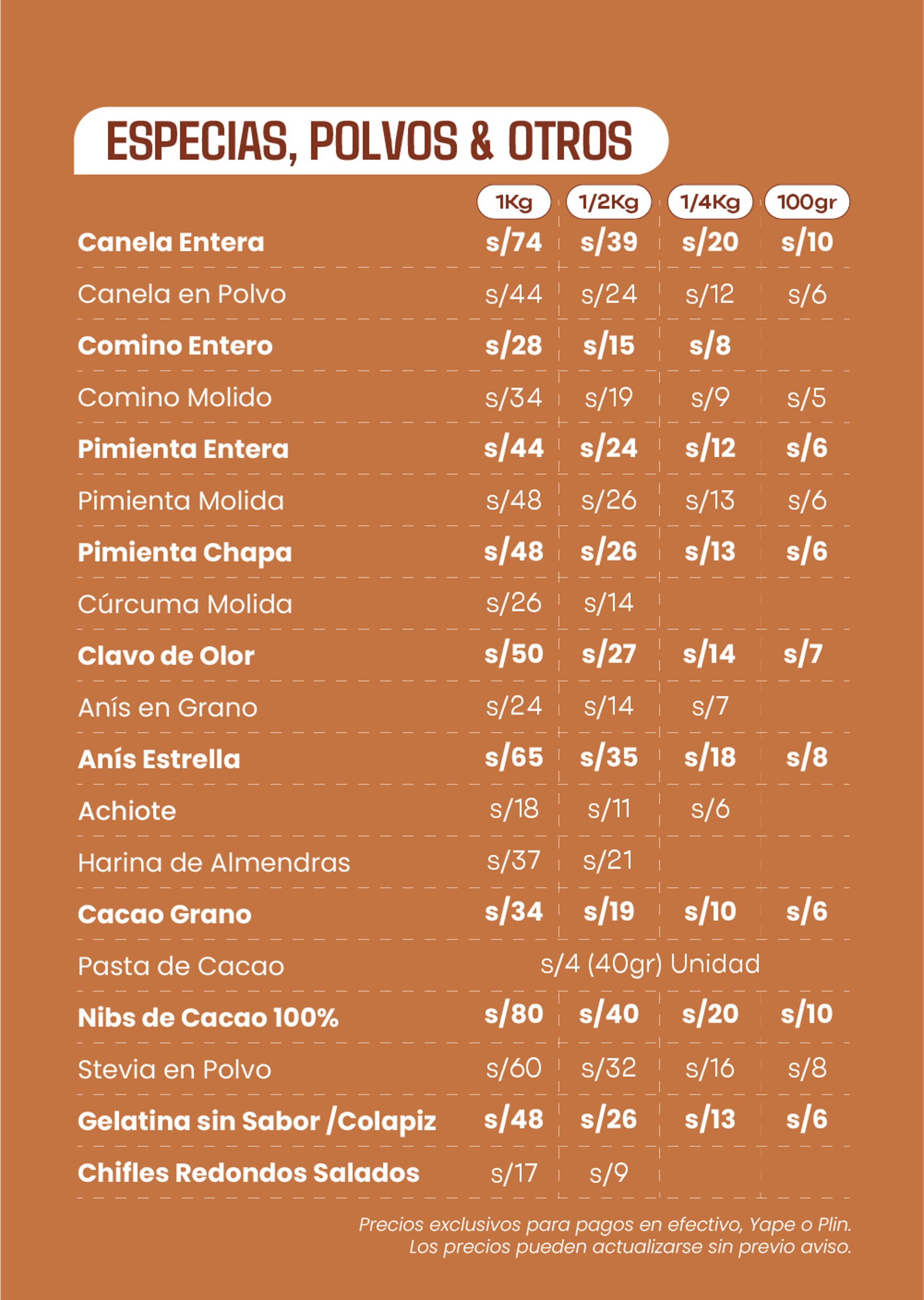 PRODUCTOS 1Kg 1/2kg 1/4kg 100gr