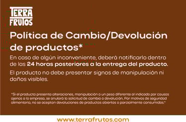 ⚠️Si el producto presenta alteraciones, manipulación o un peso diferente al indicado por causas ajenas a la empresa, se anulará la solicitud de cambio o devolución, Por motivos de seguridad alimentaria, no se aceptan devoluciones de productos abiertos o parcialmente consumidos.